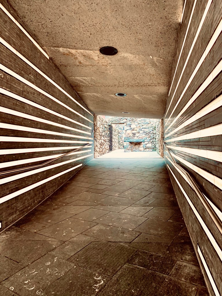 My first thought was of its contemporary elegance, unexpected and intriguing. The entrance walkway is wood and light, inscribed with old Irish proverbs, poetry and information on the atrocity as well as recorded audio excerpts.